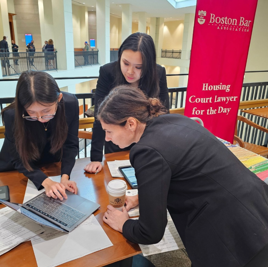 Every other week, Mau participates in attorney-for-the-day at Boston Housing Court, “assisting whoever walks in that morning.” The Housing Law Clinic team mans the table, ready to advise tenants representing themselves on their legal rights and offering representation when they can. Sometimes the team only has five minutes with a new client, assessing their situation and needs, before walking into court to represent them—a far cry from theoretical education.