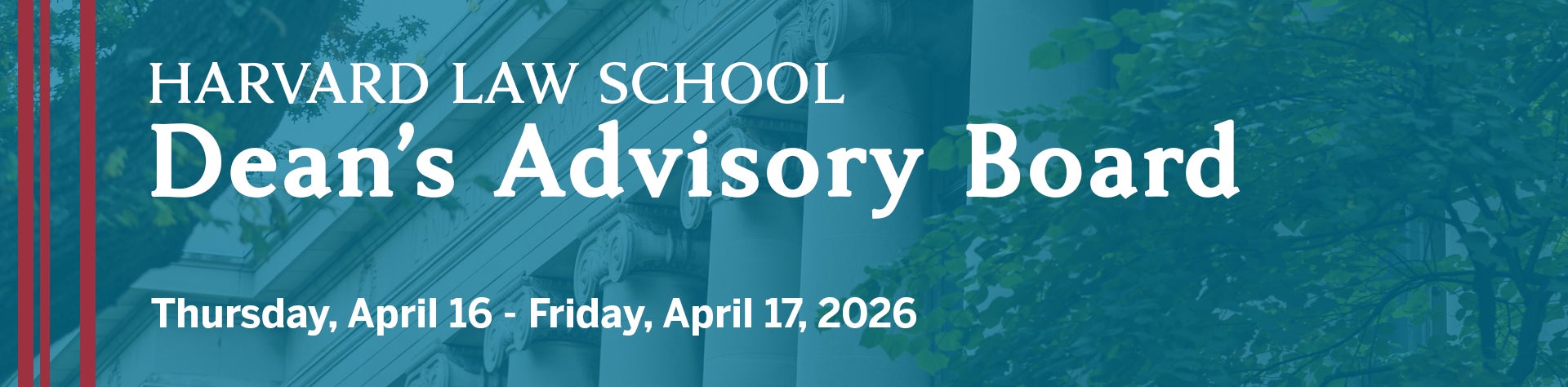 We are pleased to host the Dean’s Advisory Board meeting on the Harvard Law School campus on Thursday, April 16, and Friday, April 17, 2026. This meeting will provide an opportunity to convene in person for discussions with Dean John Goldberg, senior administrators, and faculty on the school’s priorities and initiatives.