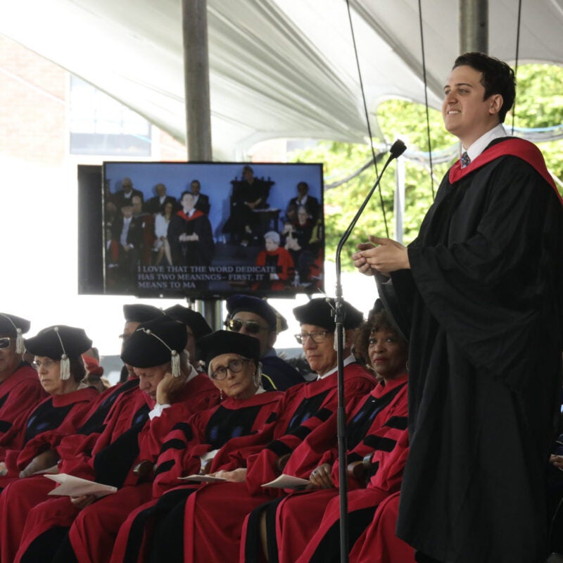 The ceremonial University Morning Exercises, where the Harvard President and the University Commencement Speaker deliver their addresses, and the President confers degrees.