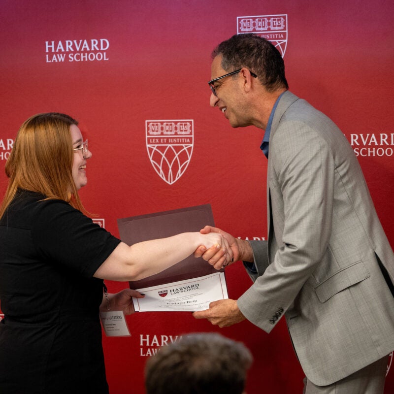 Kathryn Berg Receives Emerging Leaders Program Certificate from HLS Dean Goldberg