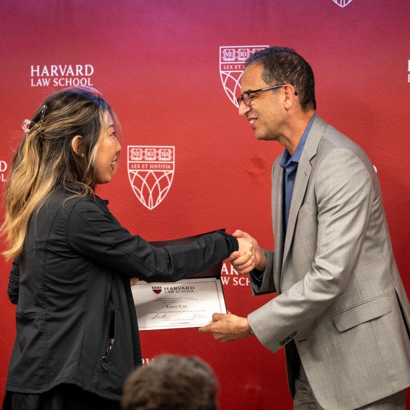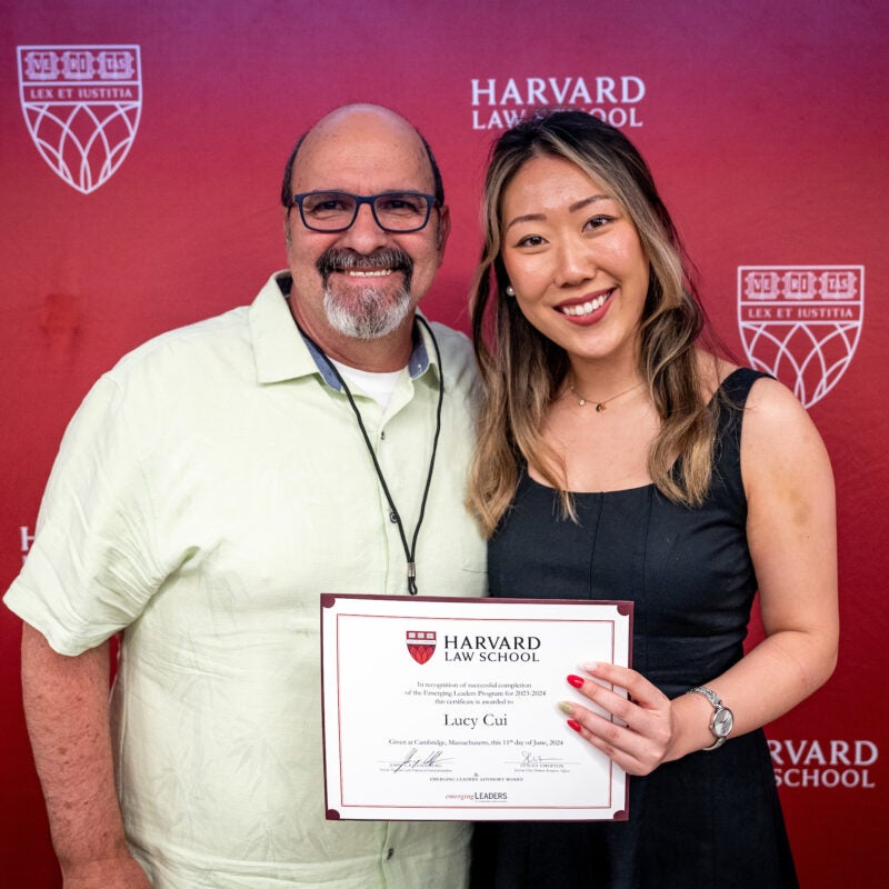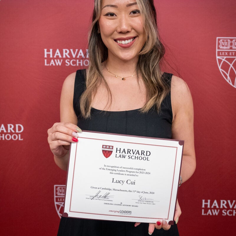 Lucy Cui Receives Emerging Leaders Program Certificate from HLS Dean Goldberg