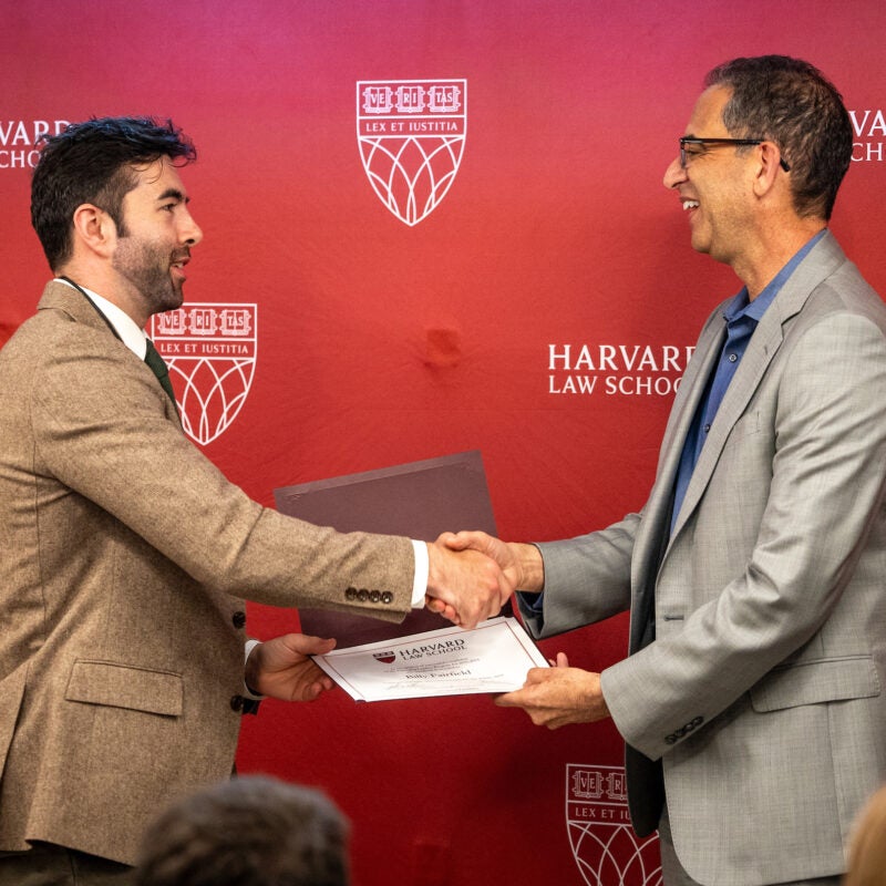 Billy Fairfield Receives Emerging Leaders Program Certificate from HLS Dean Goldberg