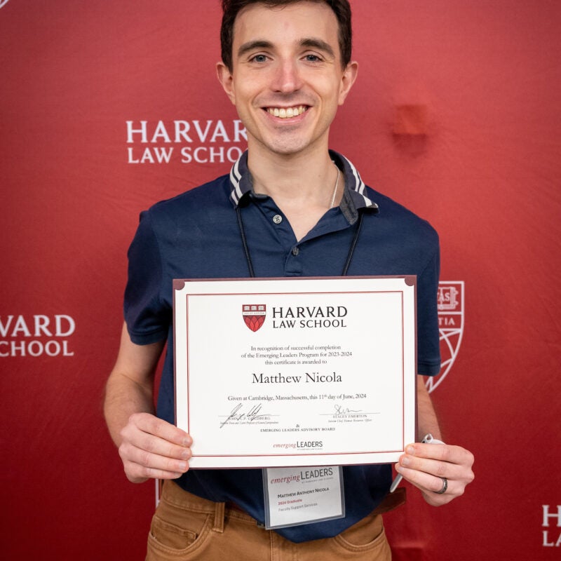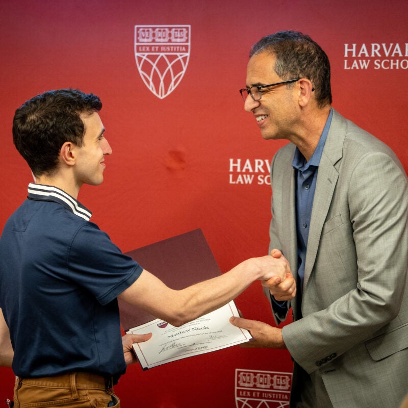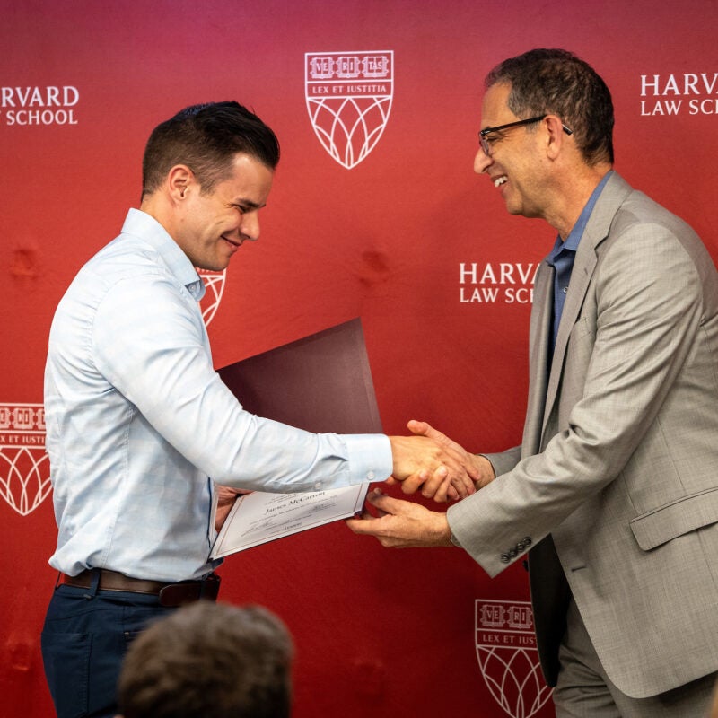 James McCarron Receives Emerging Leaders Program Certificate from HLS Dean Goldberg