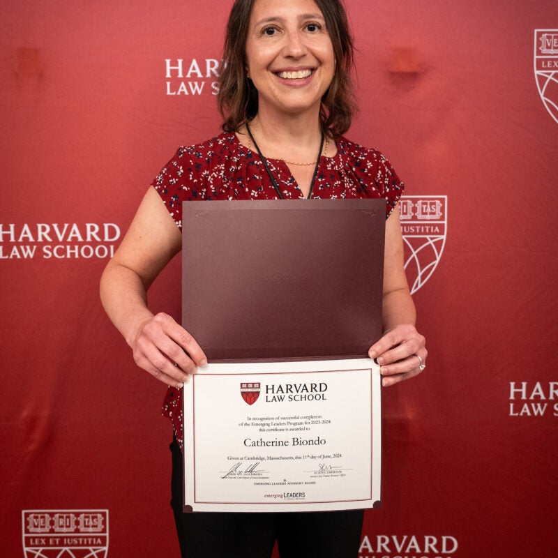 Catherine Biondo Receives Emerging Leaders Program Certificate from HLS Dean Goldberg