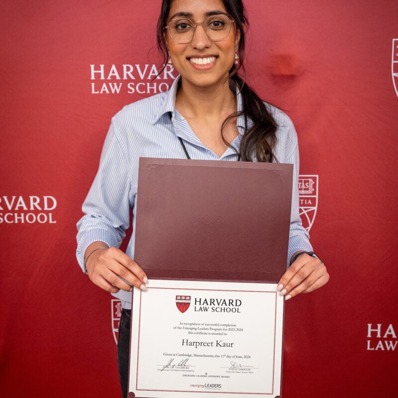 Harpreet Kaur Receives Emerging Leaders Program Certificate from HLS Dean Goldberg