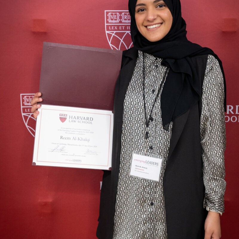 Reem Al-Khalqi Receives Emerging Leaders Program Certificate from HLS Dean Goldberg