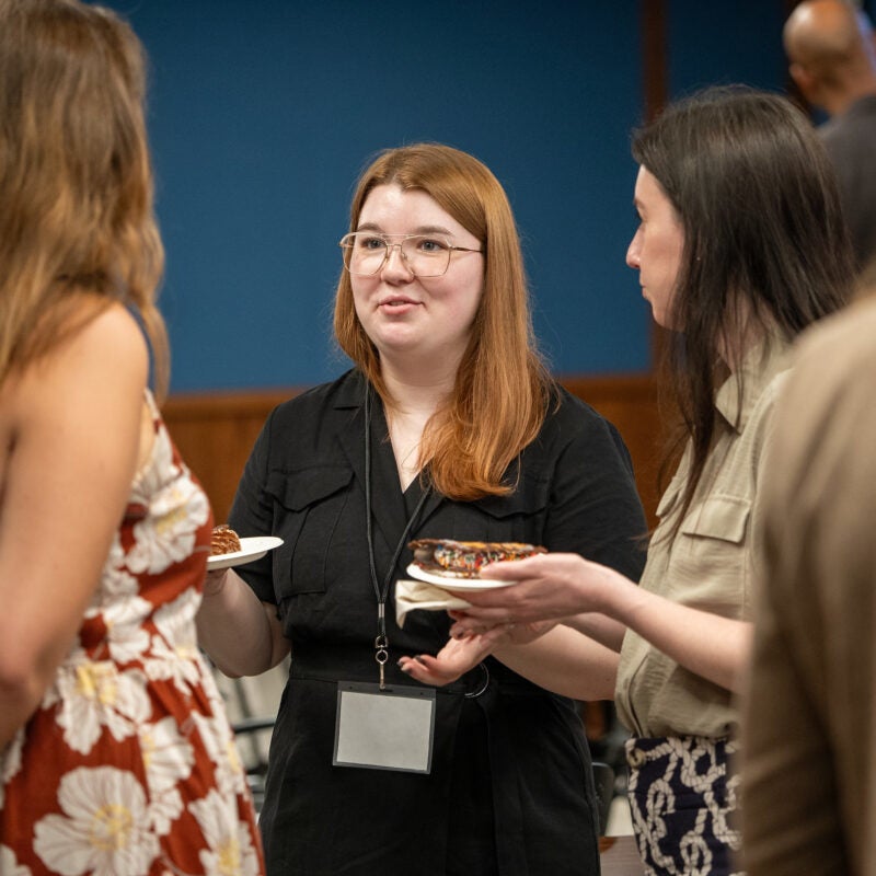 Enjoying refreshments.