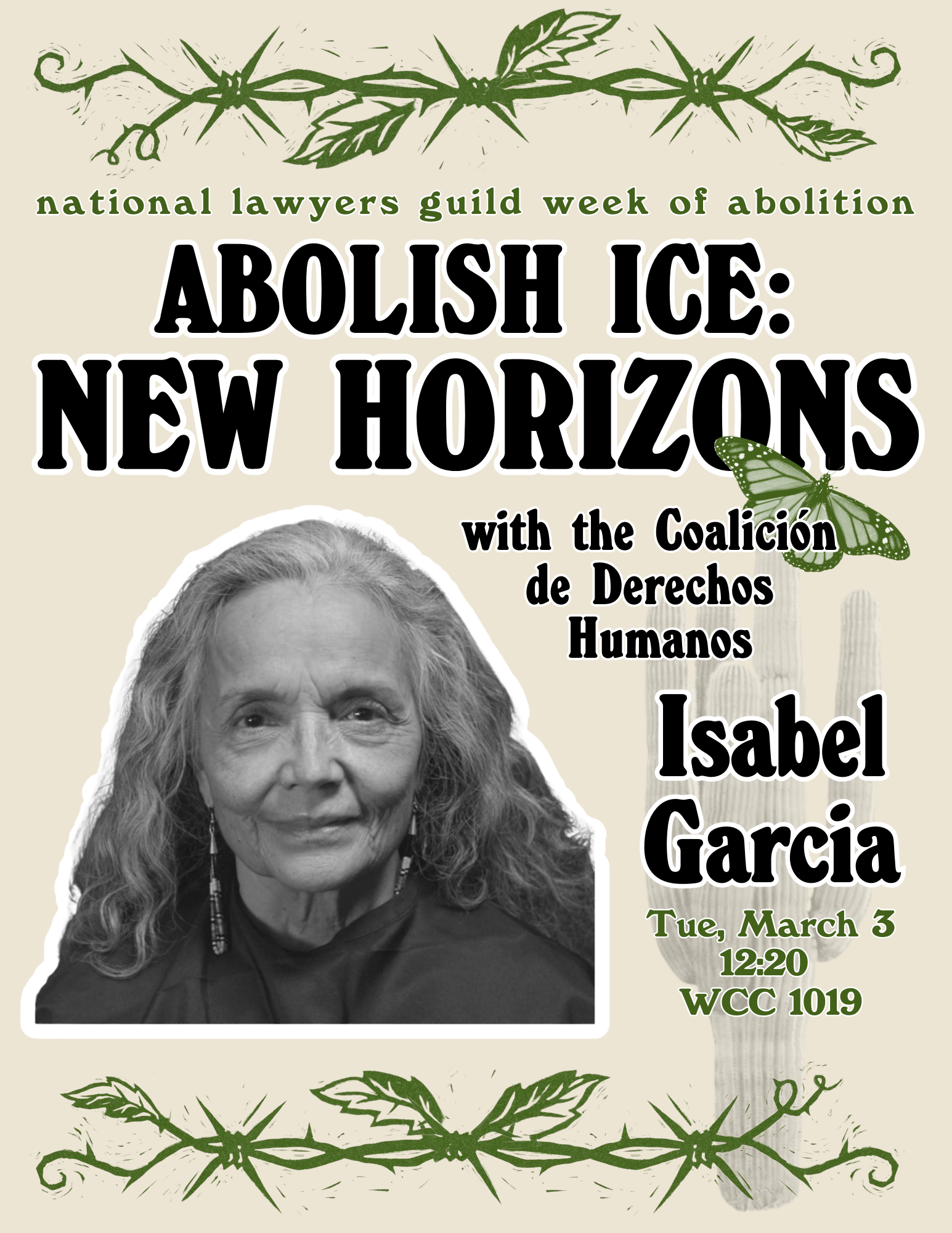 What would it mean to abolish ICE? Join us for a conversation with Isabel Garcia, co-chair of Coalición de Derechos Humanos and former Pima County Legal Defender, about her work organizing for immigrant justice. Lunch will be served.