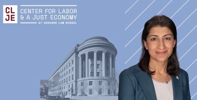 Former Federal Trade Commission Chair and co-Chair for the Zohran Mamdani mayoral transition Lina M. Khan will join CLJE Director Sharon Block for a conversation reflecting on her tenure at the FTC and the role of antitrust in protecting workers, consumers, innovation, and broad-based economic growth.