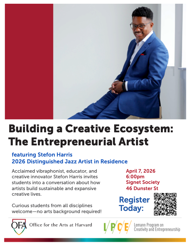 Acclaimed vibraphonist, educator, and creative innovator Stefon Harris invites students into a conversation about how artists build sustainable and expansive creative lives.
