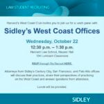 Attorneys from Sidley’s Century City, San Francisco, and Palo Alto offices will discuss their practices, share their perspectives of practicing on the West Coast and answer questions from attendees. Lunch will be provided! RSVP through FloRecruit with this link: https://florecruit.com/v2/app/sidley/registration/events/94218/register
