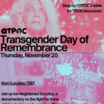 QTPOC Screening of “Heightened Scrutiny” (Transgender Day of Remembrance)