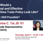 East Asian Legal Studies Talk: Ambassador Katherine C. Tai, JD ’01 U.S. Trade Representative (2021-2025) Ambassador Katherine C. Tai served as the 19th United States Trade Representative. As a member of President Biden’s Cabinet, Ambassador Tai was the principal trade advisor, negotiator, and spokesperson on U.S. trade policy from March 2021 to January 2025. Prior […]