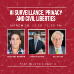 Join the National Security & Law Association, La Alianza, and the International Law Journal for a lunch talk with Tino Cuéllar, president of the Carnegie Endowment and former justice of the CA Supreme Court. Justice Cuéllar will speak about his time on the bench, his experiences serving in senior roles in government, and his continued […]