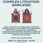 Join litigation attorneys Moe Fodeman and Ben Hewitt for a practical discussion demystifying complex commercial litigation and internet strategy litigation, with insights into how these matters are handed in practice. Please RSVP! Lunch will be provided.
