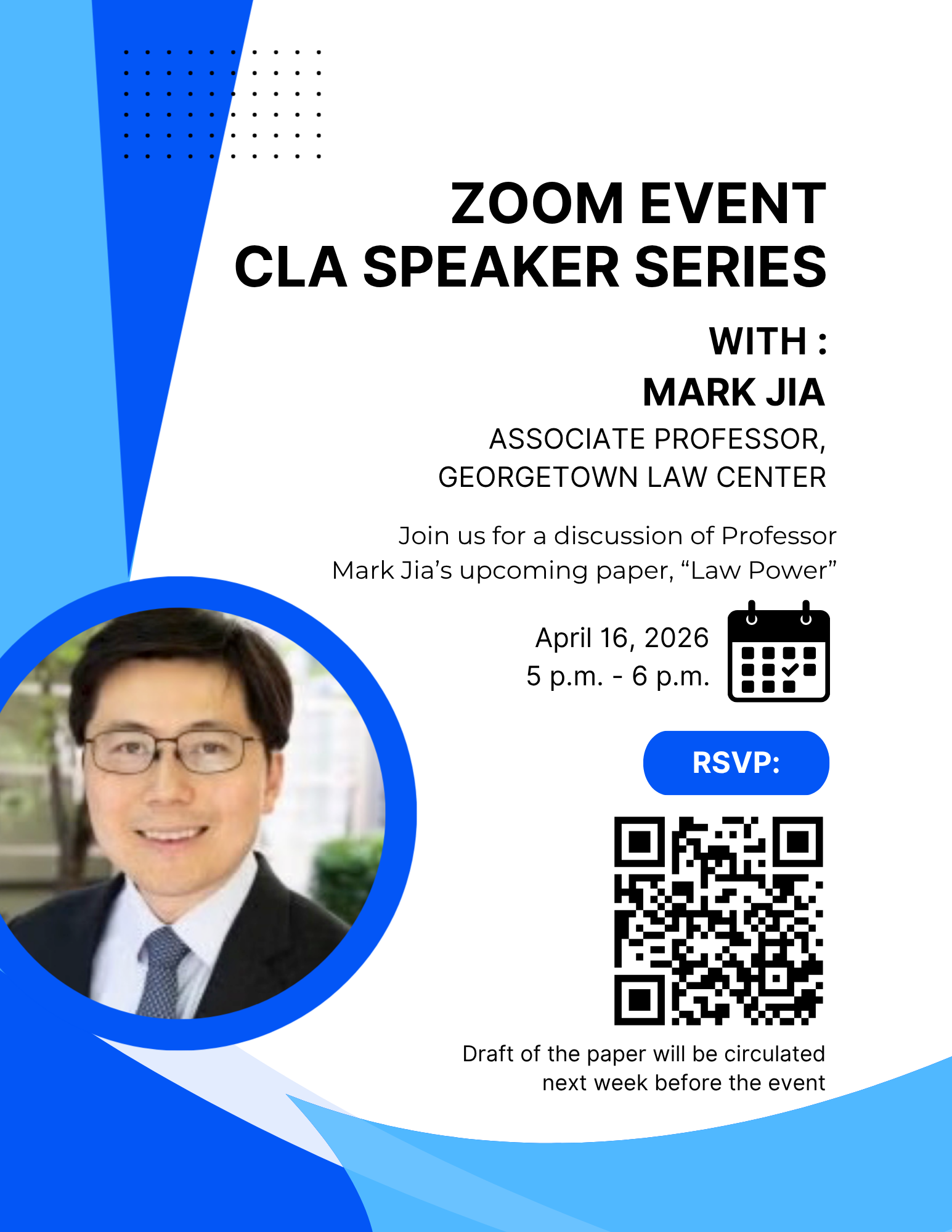 A brief introduction of “Law Power,” which Professor Jia will be discussing with attendees, is attached below. If you are interested in attending the event, please RSVP. The Zoom link and draft paper will be circulated to those who RSVP by Tuesday April 14.