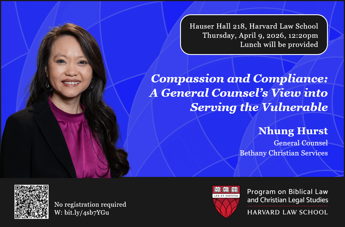 Join us for a conversation with Ms. Nhung Hurst, General Counsel of Bethany Christian Services, as she shares her experiences from 20+ years of serving the most vulnerable through her work in the non-profit sector. Ms. Nhung will discuss, in particular, her experiences at Bethany Christian Services and Samaritan’s Purse, where she has been at the forefront of demonstrating Christian compassion, while navigating government affairs and compliance in the most pressing of circumstances. Lunch will be provided. Event open to the Harvard community – no registration is required.