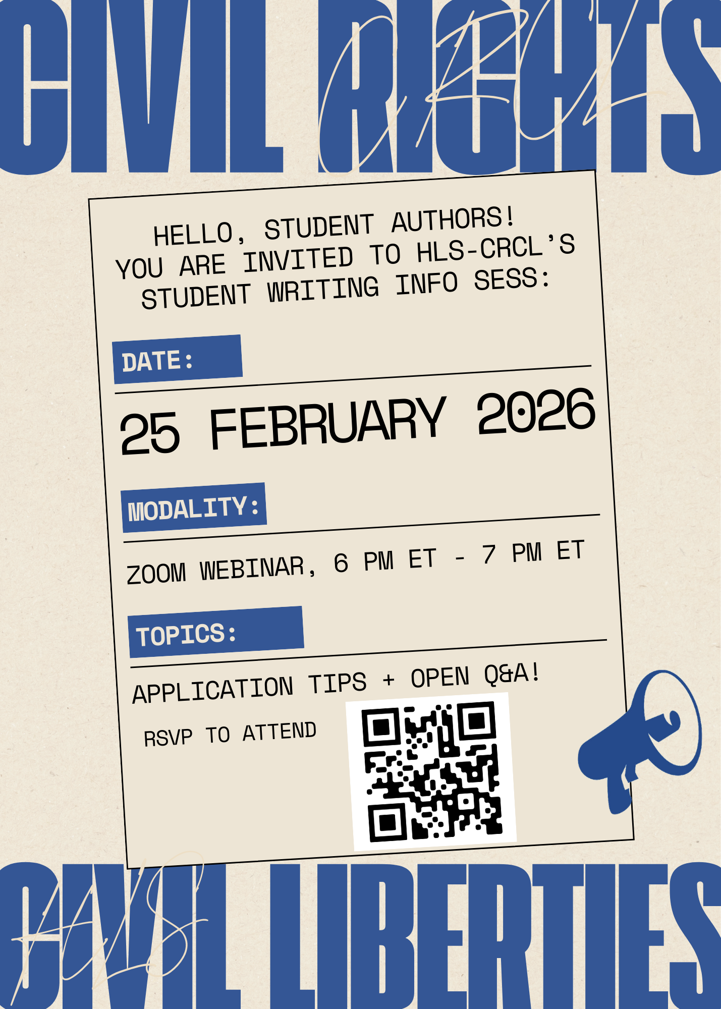 CR-CL Student Writing is now accepting submissions for Volume 62, Issue 1! We will accept submissions until March 10th, 2026, at 11:59 p.m. EST. All submissions should be made through the form linked on our website; we will not accept submissions via email.