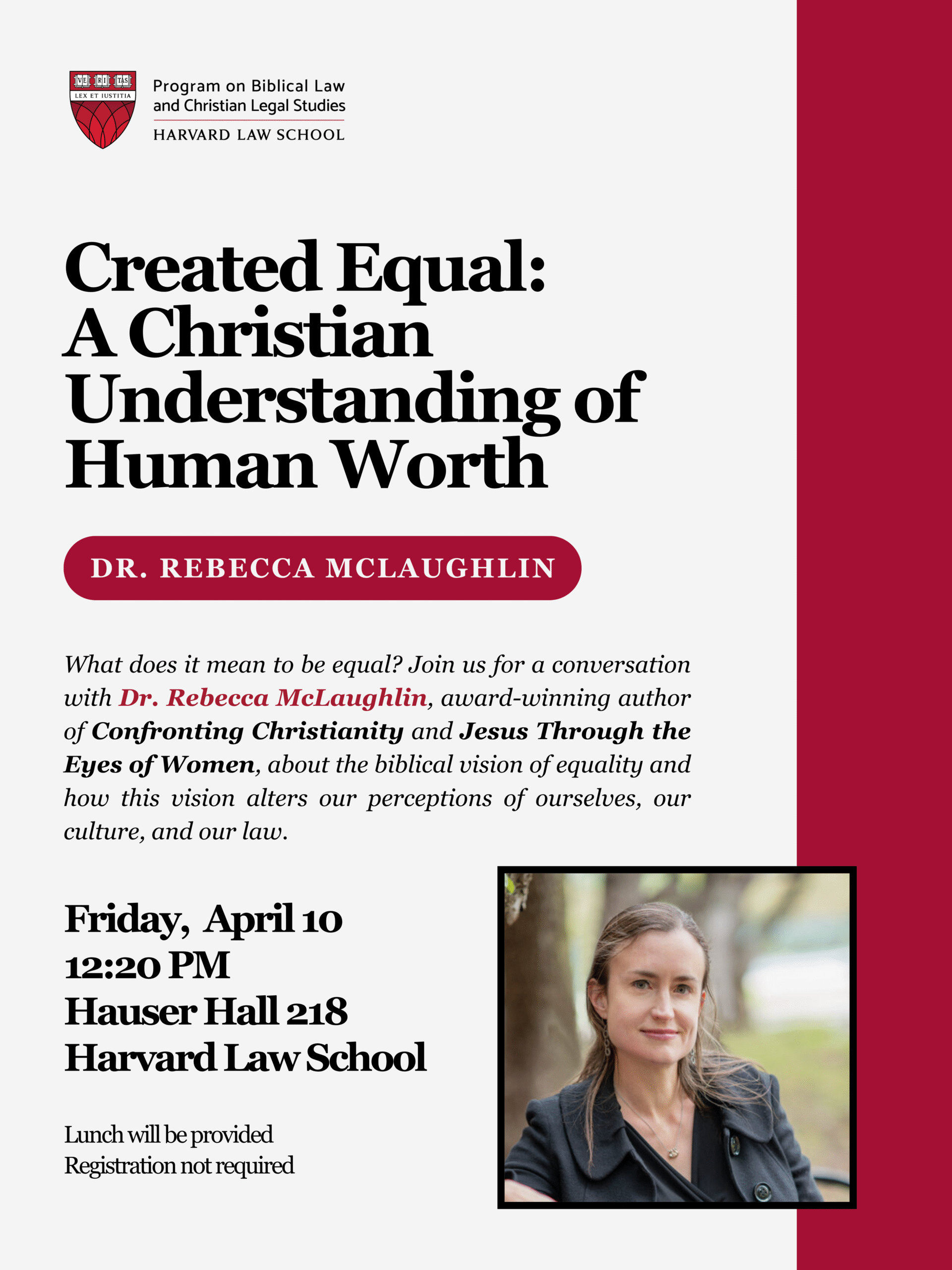 What does it mean to be equal? Join us for a conversation with Dr. Rebecca McLaughlin, award-winning author of Confronting Christianity and Jesus Through the Eyes of Women, about the biblical vision of equality and how this vision alters our perceptions of ourselves, our culture, and our law.