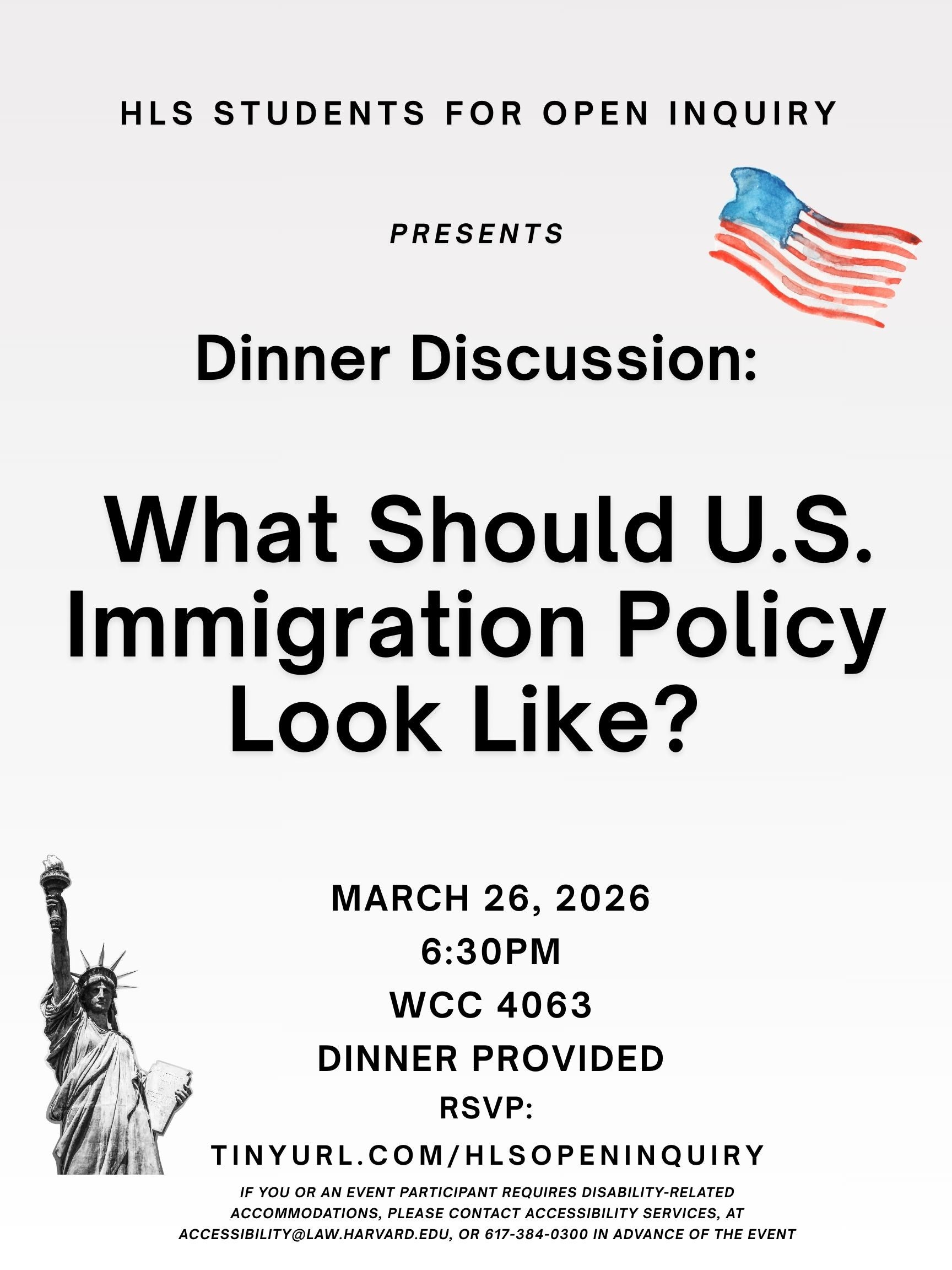 HLS is home to a wide range of viewpoints. Students for Open Inquiry aims to provide students from all backgrounds with the opportunity to engage with fellow students who have settled, unsettled, and differing viewpoints in an informal setting. You can subscribe to our listserv to be notified of future events here.