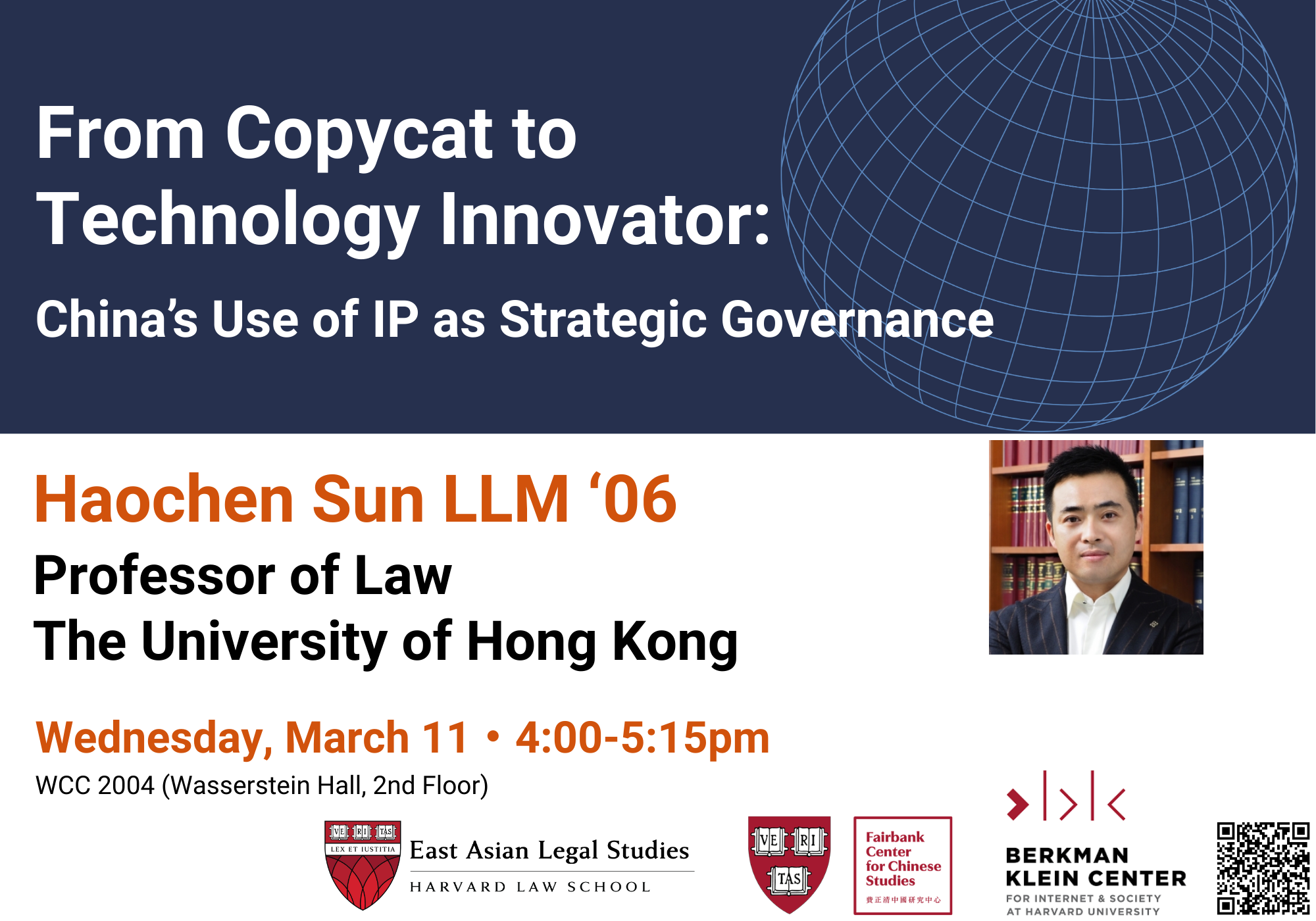 What role have state-orchestrated intellectual property policies played in China’s emergence as a major technology innovator? This talk discusses two interrelated transformations that have taken place in China over the past two decades: the rise and fall of the shanzai (copycat) culture movement and China’s ascent as a tech superpower since 2015. In analyzing these transformations, the talk explains how China has deployed IP as a tool of strategic governance and statecraft.