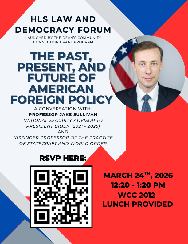 HLS Law and Democracy Forum: The Past, Present, and Future of American Foreign Policy: A Conversation with Professor and Former NSA Jake Sullivan