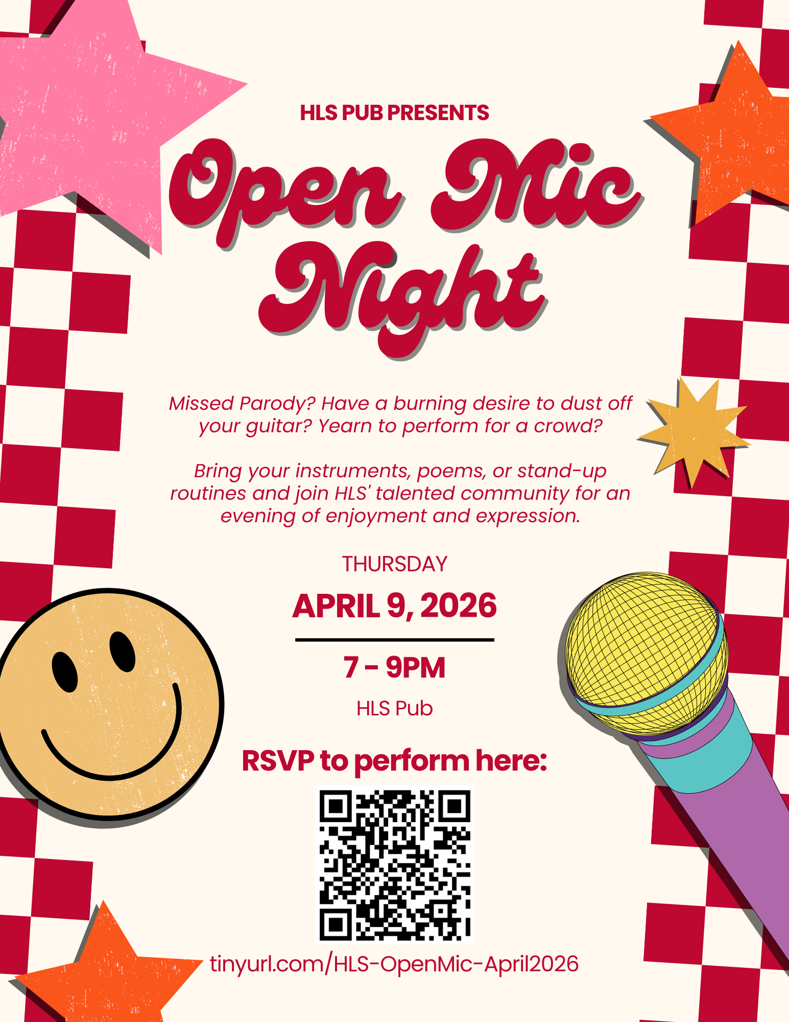 Bring your instruments, poems, or stand-up routines and join HLS’ talented community for an evening of enjoyment and expression. HLS students, faculty, and staff are all welcome to perform. Register here.