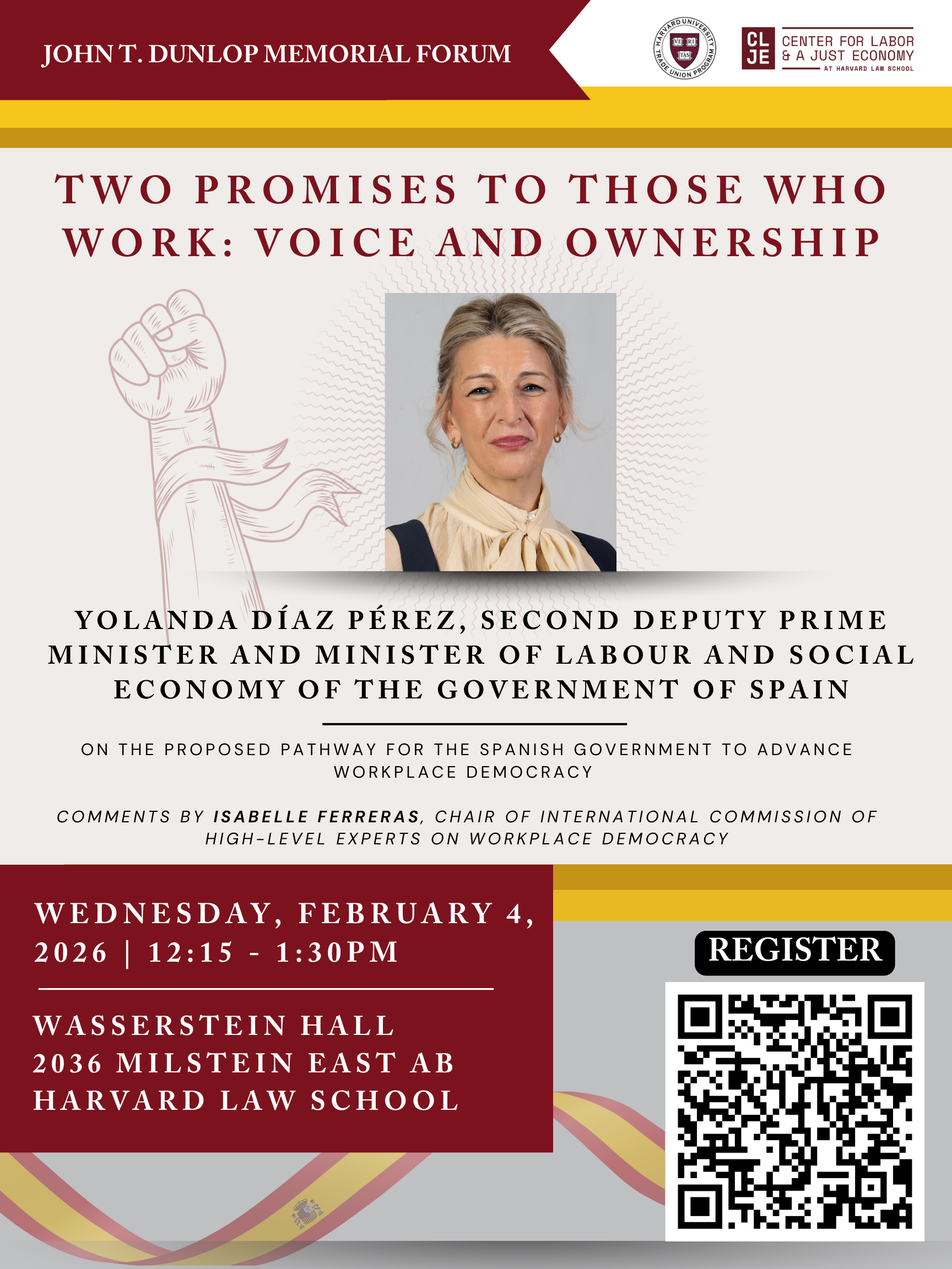 John T. Dunlop Memorial Forum — “Two Promises to Those Who Work: Voices and Ownership” with Second Vice President of Spain, Yolanda Diaz Pérez