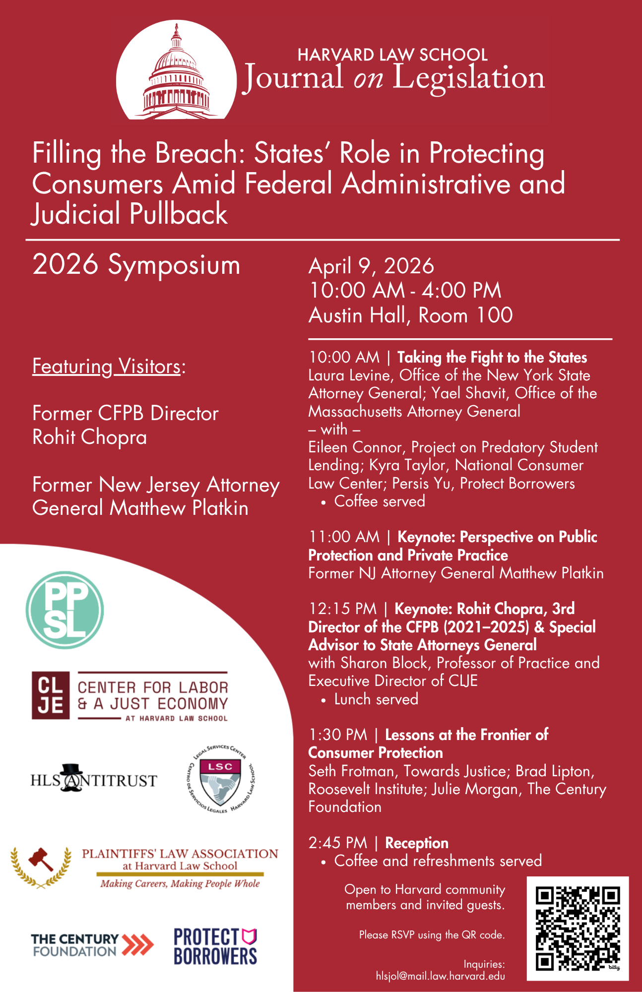 Please join the Harvard Journal on Legislation for our annual symposium, this year entitled Filling the Breach: States’ Role in Protecting Consumers Amid Federal Administrative and Judicial Pullback. Over the course of the day, speakers will discuss the role of federalism in consumer protection law.