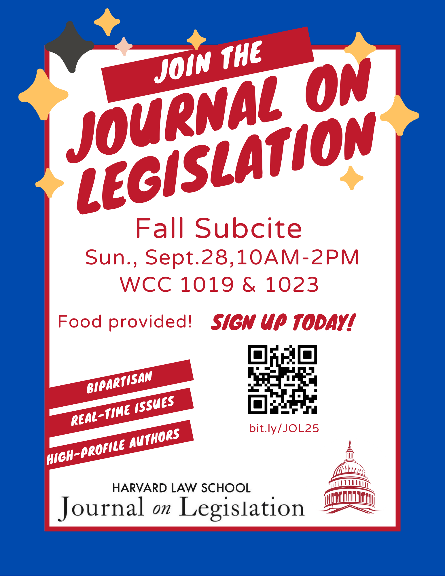 The Harvard Journal on Legislation is the nation’s premier legal journal focused on the analysis of legislation and the legislative process. First published in 1964, the Journal on Legislation is the third oldest journal at Harvard Law School. The Journal is published semi-annually, in winter and summer.