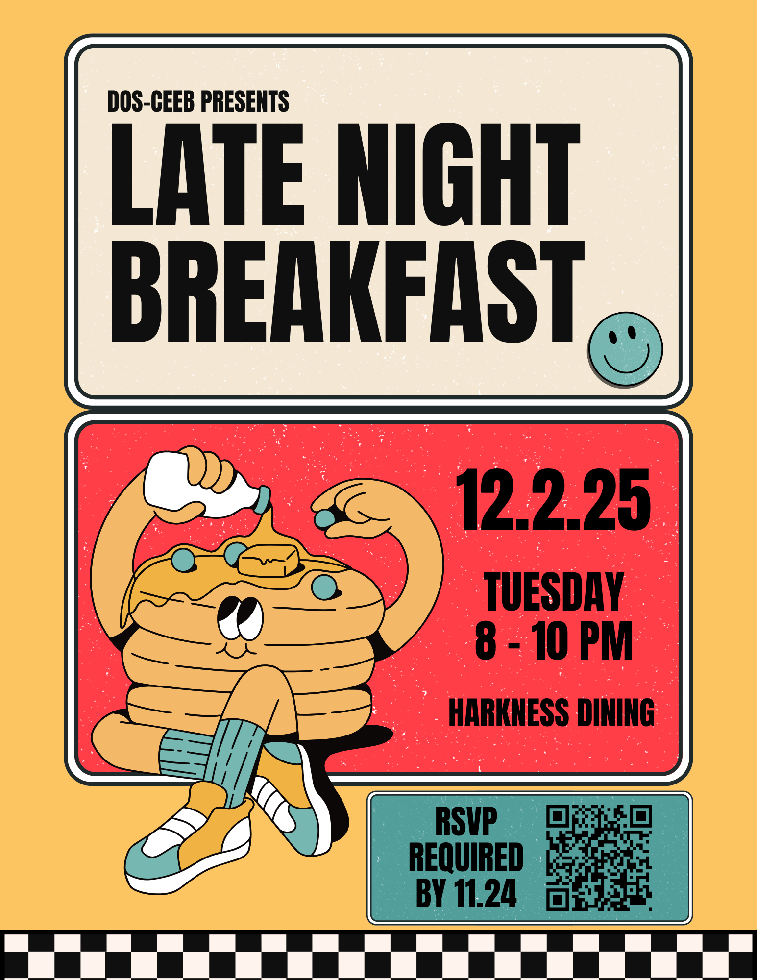 Your favorite end-of-semester event is back! Fuel up for exam season and hang out with friends at DOS-CEEB’s Late Night Breakfast.
