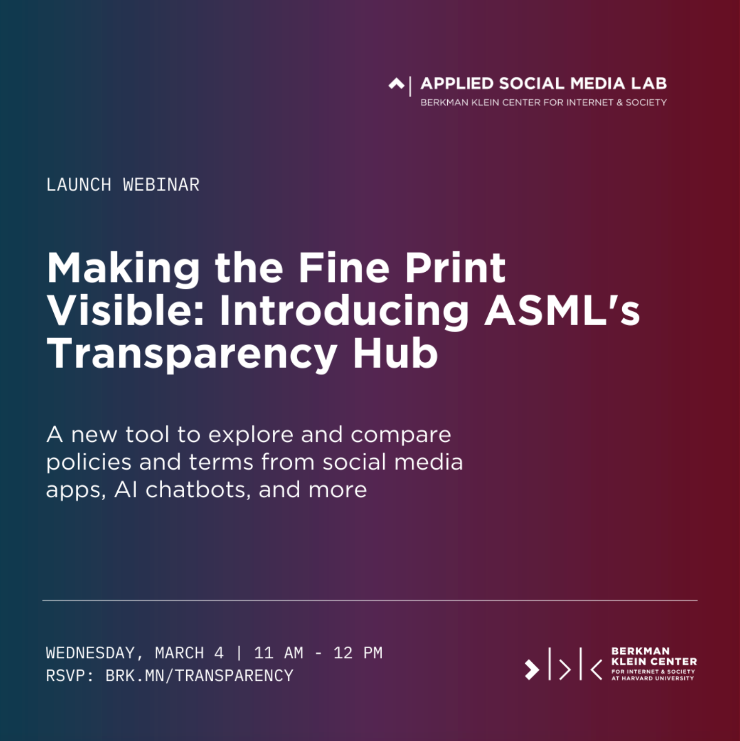 Please join ASML and its team of product managers and engineers to celebrate the public launch of Transparency Hub with a demonstration and discussion about how it can help us track and understand how user data flows through social and technology applications.