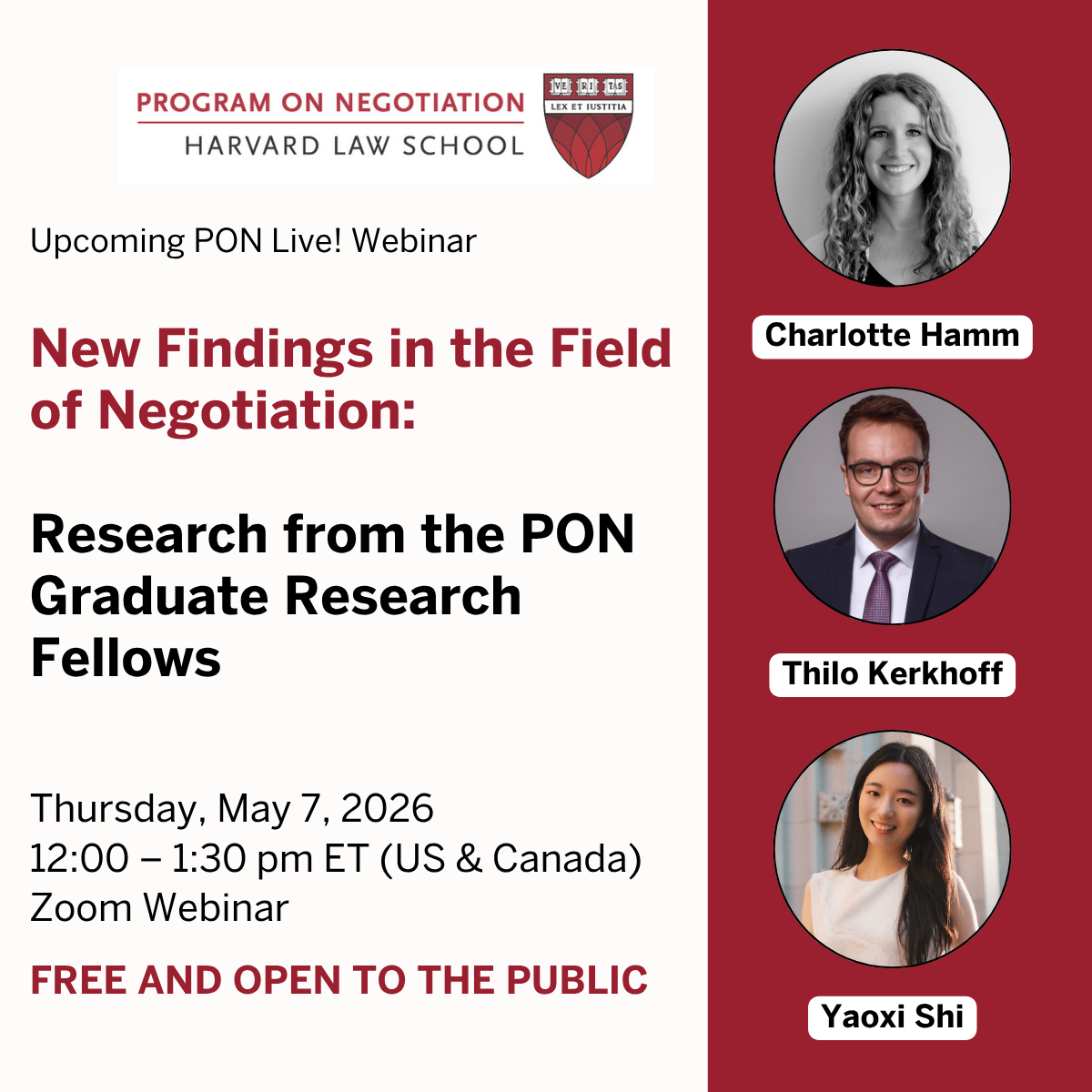 New Findings in the Field of Negotiation: Research from the PON Graduate Research Fellows