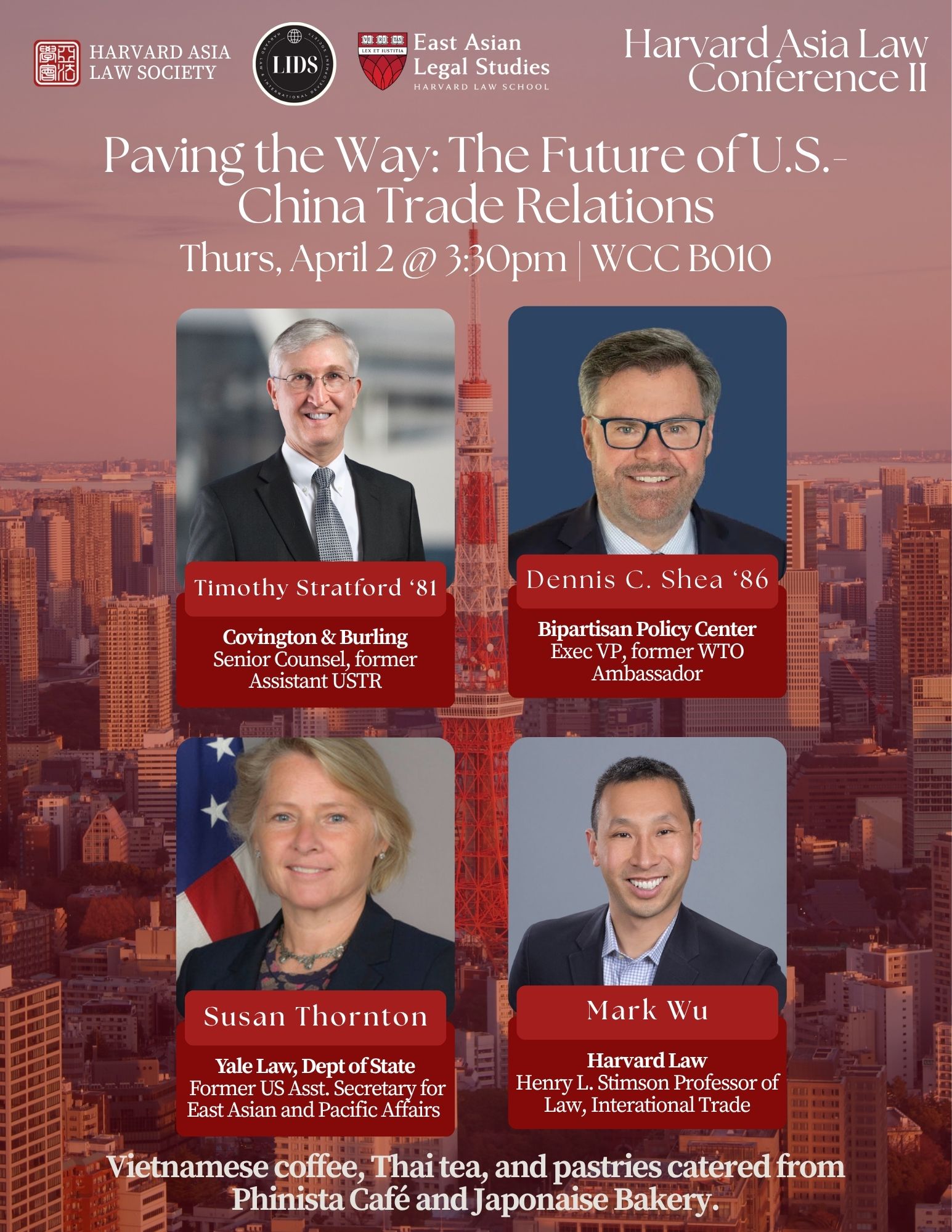 The U.S. and China are the world’s two largest economies, constituting nearly half of the global GDP and manufacturing output. They are also each other’s largest trading partners. Yet, over the past decade, their trade relationship has faced steep challenges characterised by an ongoing trade war, intense strategic competition, and geopolitical tensions. Gathering experts on international trade and policy, this panel looks into the history and future of U.S.-China trade relations under the current presidential administration, as well as its implications for law students and the broader Asian legal community interested in practicing in that region.