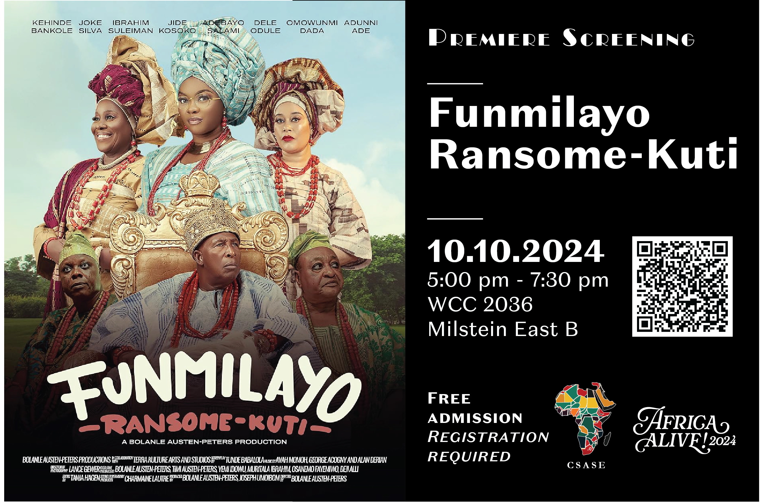 Join the Harvard community for a premiere screening of the award-winning 2024 biopic about the life of Funmilayo Ransome-Kuti, a renowned African suffragette and mother of the inimitable afrobeat legend, Fela Kuti. Directed and produced by Bolanle Austen-Peters, the biopic is one of the highest grossing films on the African continent this year.