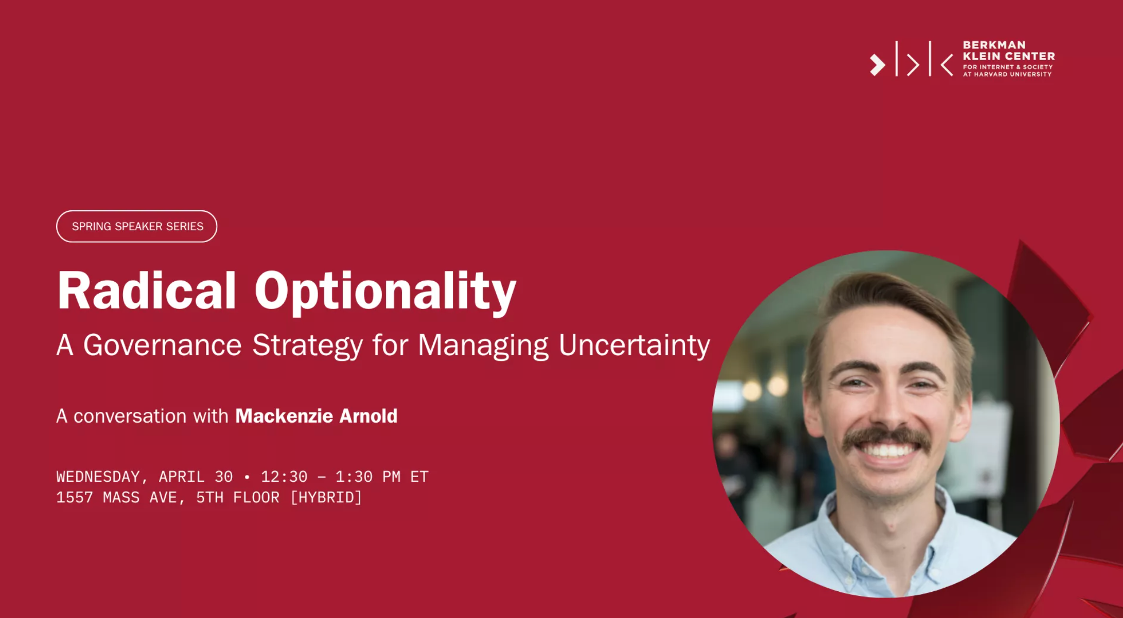 Often, the suggested answer falls near one of two poles: regulatory skepticism (“we don’t know enough; do nothing”) or regulatory prescriptivism (“we know enough; regulate today”). In this talk, Mackenzie Arnold will outline a third option: “radical optionality.” Radical optionality takes seriously the limits of our current knowledge, and the risk that static regulation may quickly become outdated or hinder technological progress. But rather than resolving to do nothing, it proposes a set of actions to maintain flexibility and inform future decision making. By focusing on managing uncertainty rather than ignoring it, radical optionality highlights the value of tools that help governments learn, coordinate, reason, and respond. It offers a potential path toward managing uncertainty.