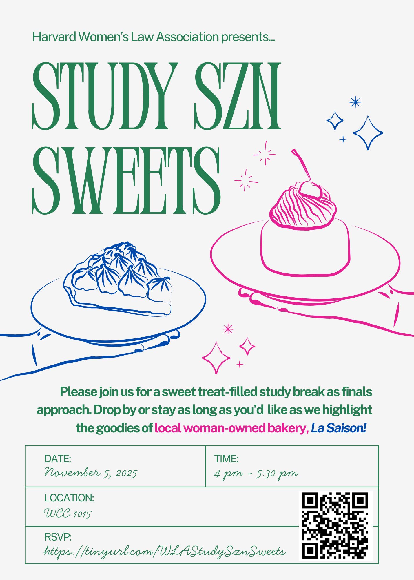 Take a study break and join the Women’s Law Association Women’s History Month Committee to celebrate local woman-owned business La Saison Bakery! Stop by for a sweet treat or stay to hang and connect with the WLA community!