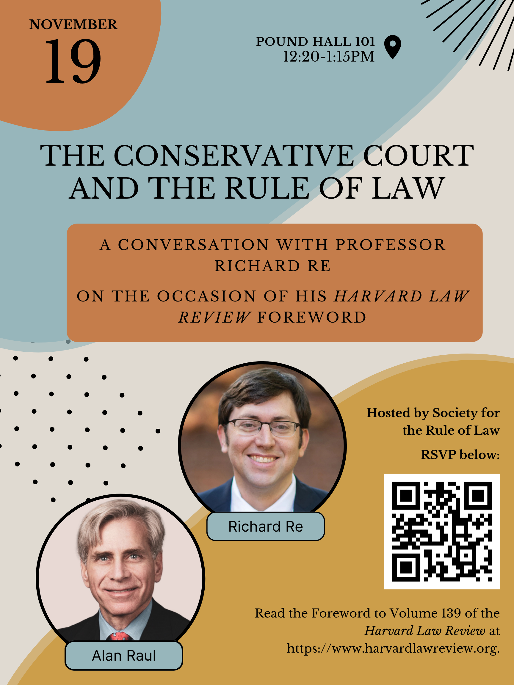 Please join the Society for the Rule of Law for a conversation with Professor Richard Re on the occasion of his Harvard Law Review Foreword to Volume 139, “Foreword: To a Conservative Warren Court.” Professor Alan Raul will be facilitating the discussion.