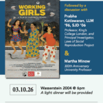 Please join us for a screening of Working Girls followed by a discussion with Prabha Kotiswaran, LLM ’96, SJD ‘06, Professor, King’s College London, and Principal Investigator, Laws of Social Reproduction Project and Martha Minow, 300th Anniversary University Professor A light dinner will be provided Co-sponsored by International Legal Studies, South Asian Law Students Association, […]