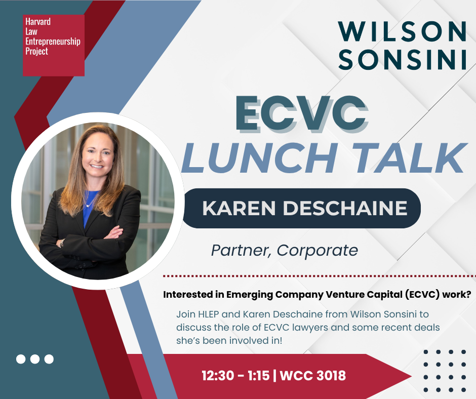 Interested in ECVC work? Join HLEP and Karen Deschaine, a partner in the corporate practice at Wilson Sonsini, for a discussion on the role of ECVC lawyers during lunch on November 6 in WCC 3018. RSVP HERE to secure your spot!
