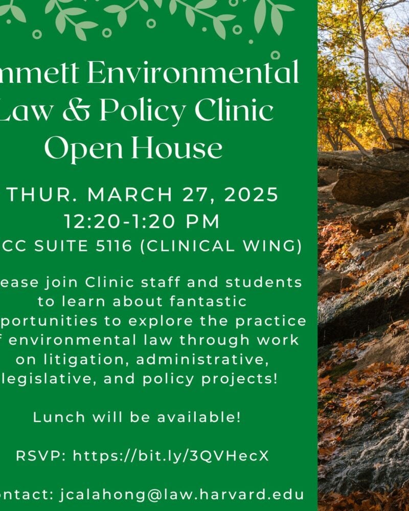 Please join the Emmett Environmental Law and Policy Clinic for a lunch conversation with James Pollack, JD’20, Senior Associate at Marten Law. James will reflect…