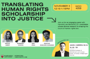 Join us for an engaging panel with Harvard Law School S.J.D. candidates whose diverse research is shaping the future of human rights law. Hear about…