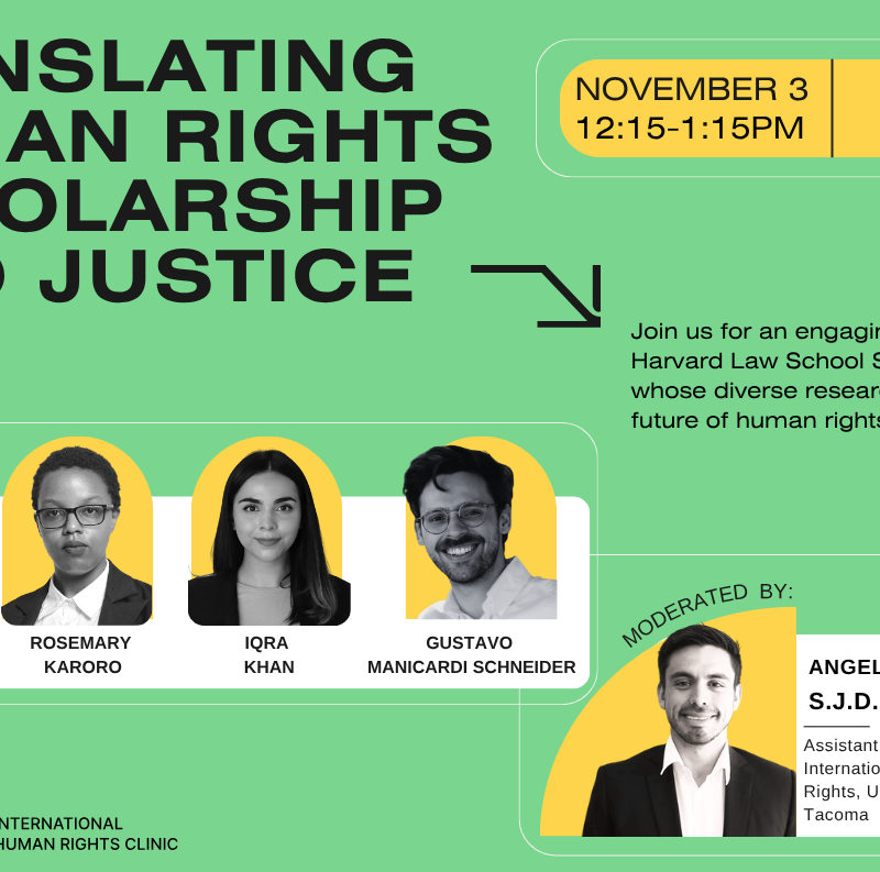Join us for a thought-provoking panel discussion featuring recent Clinic alumni who are at the forefront of human rights practice. Panelists will share their personal…