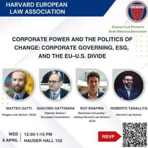 The Harvard European Law Association is pleased to host a lunch talk on Wednesday, April 8, from 12:30 to 1:15 p.m. in Hauser Hall 102…