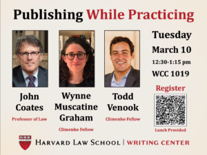 Want to publish a paper? Want to keep the door open for a career in academia? Join the Harvard Law School Writing Center on March…