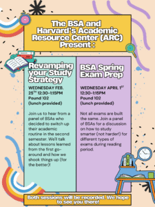 Join the BSA and Harvard’s Academic Resource Center (ARC) to hear from a panel of BSAs who decided to switch up their academic routine in…