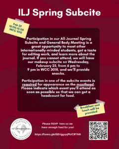 Join the Harvard International Law Journal for our spring subcite on Feb. 22 from 10 am to about 4 pm! Attendance on subcite is required…