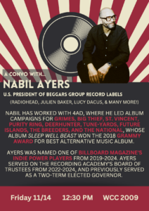 Join RAP for an exciting event with Nabil Ayers: the brain behind Grimes, Purity Ring, St. Vincent, Big Thief, Future Islands, The National (2018 Grammy…