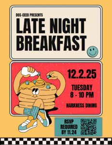 Your favorite end-of-semester event is back! Fuel up for exam season and hang out with friends at DOS-CEEB’s Late Night Breakfast. RSVP required by…