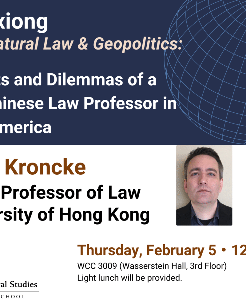 Wednesday, October 9 at 2:00 pm – 3:00 pm Dongsheng Zang (LL.M. ’96, S.J.D. ’04) Associate Professor of Law, University of Washington School of…